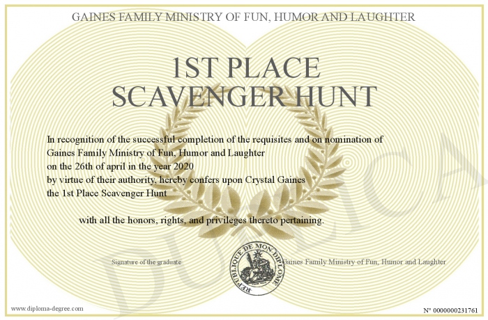 Certificate-degree can have your 1st Place Scavenger Hunt
