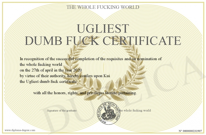 Certificate-degree can have your Ugliest dumb fuck certificate