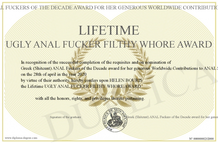 Certificate-degree can have your Lifetime UGLY ANAL FUCKER FILTHY WHORE AWARD