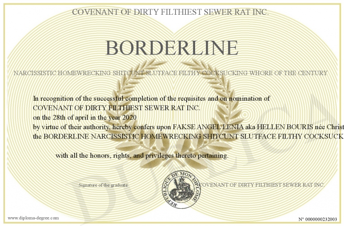 Certificate-degree can have your BORDERLINE NARCISSISTIC HOMEWRECKING SHITCUNT SLUTFACE FILTHY COCKSUCKING WHORE OF THE CENTURY