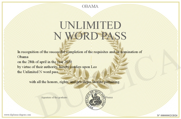 Certificate-degree can have your Unlimited N word pass