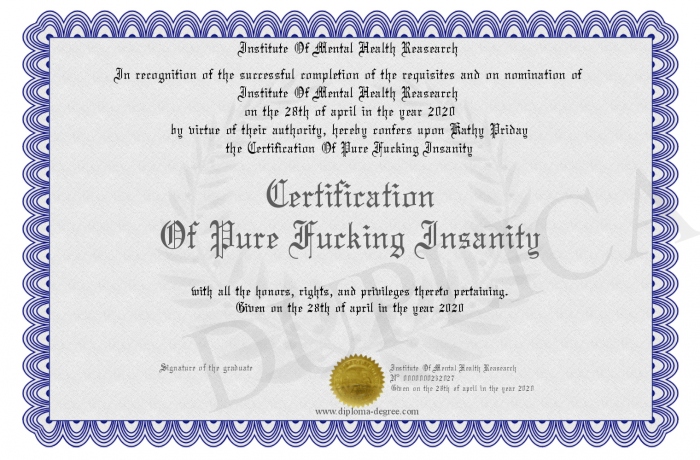 Certificate-degree can have your Certification Of Pure Fucking Insanity