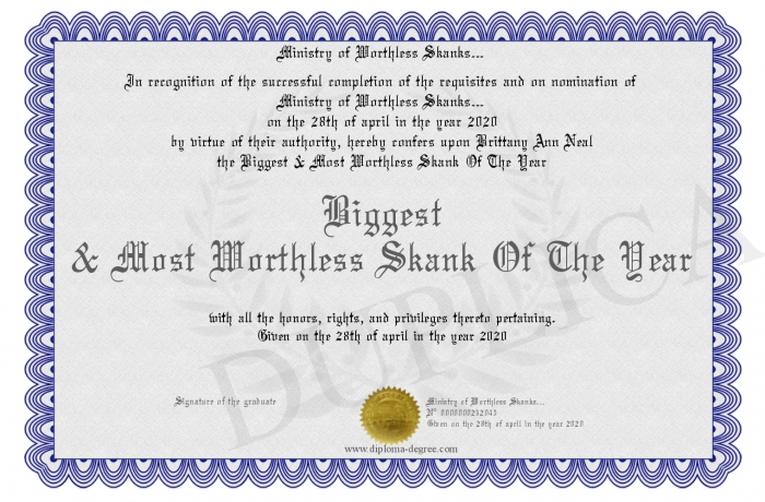 Certificate-degree can have your Biggest & Most Worthless Skank Of The Year