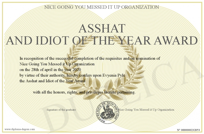 Certificate-degree can have your Asshat and Idiot of the Year Award
