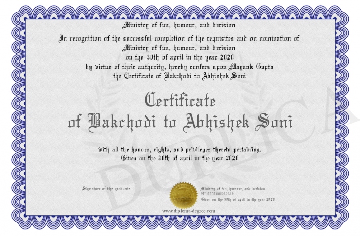 Certificate-degree can have your Certificate of Bakchodi to Abhishek Soni