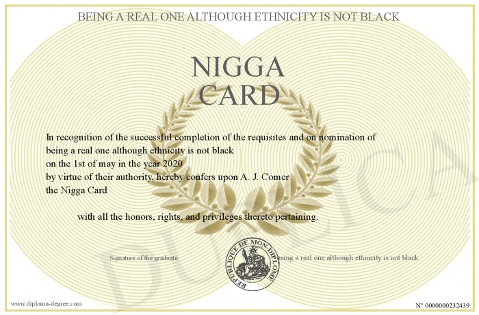 Certificate-degree can have your Nigga Card