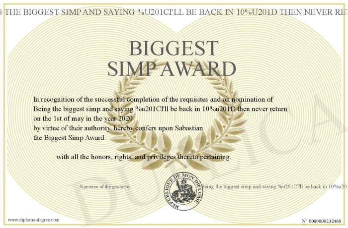 Certificate-degree can have your Biggest Simp Award