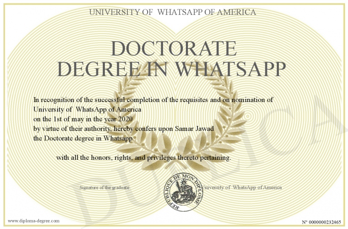 Certificate-degree can have your Doctorate degree in Whatsapp
