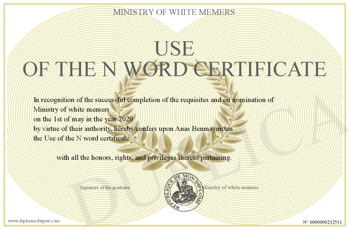 Certificate-degree can have your Use of the N word certificate