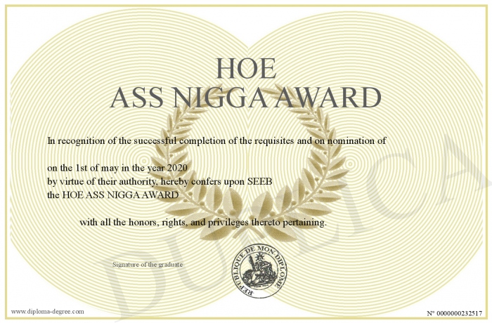 Certificate-degree can have your HOE ASS NIGGA AWARD
