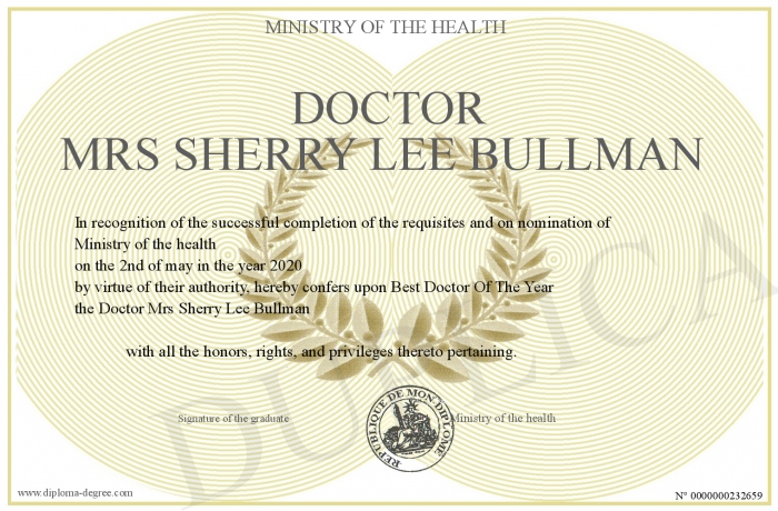 Certificate-degree can have your Doctor Mrs Sherry Lee Bullman