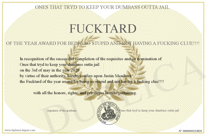 Certificate-degree can have your Fucktard of the year award for being so stupid and not having a fucking clue!!!!