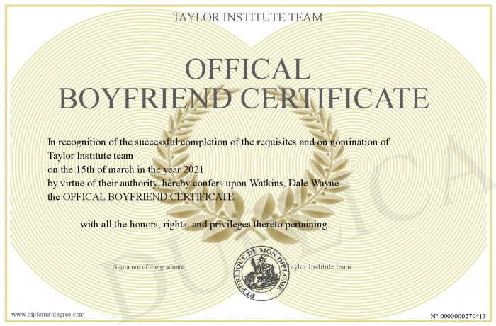 Certificate-degree can have your OFFICAL BOYFRIEND CERTIFICATE