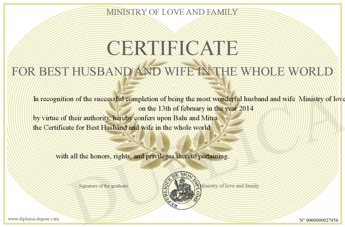 Certificate-degree can have your Certificate for Best Husband and wife in the whole world