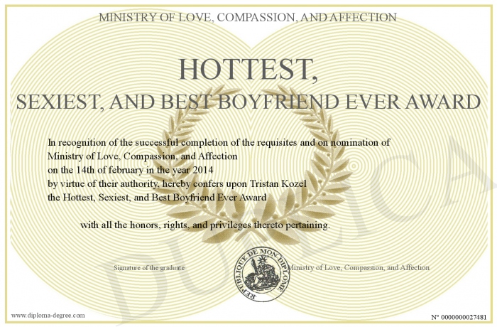 Certificate-degree can have your Hottest, Sexiest, and Best Boyfriend Ever Award