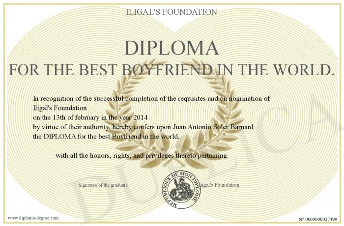 Certificate-degree can have your DIPLOMA for the best Boyfriend in the world.