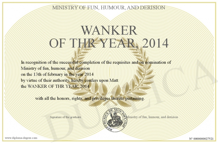 Certificate-degree can have your WANKER OF THR YEAR, 2014