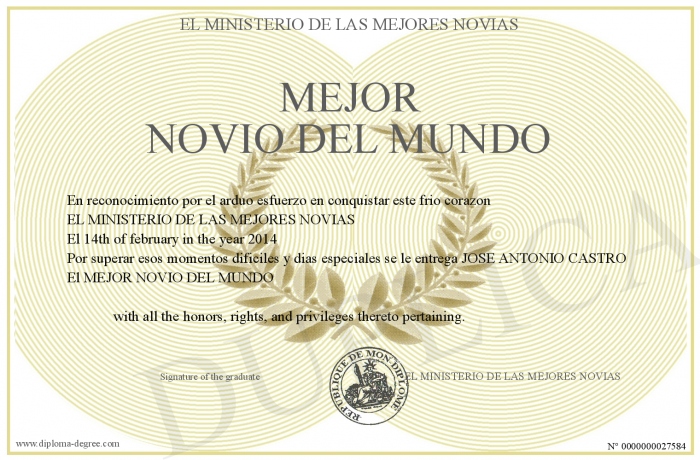 Certificate-degree can have your MEJOR NOVIO DEL MUNDO