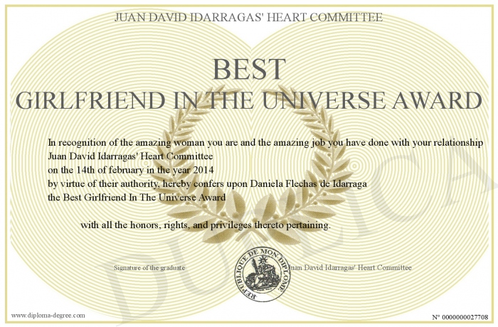 Certificate-degree can have your Best Girlfriend In The Universe Award