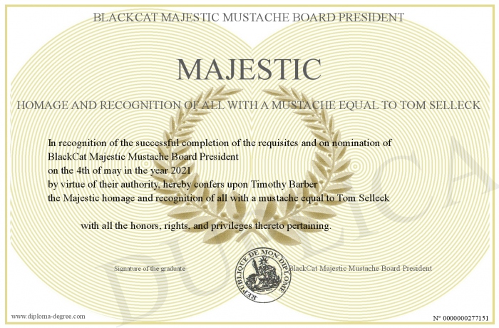 Certificate-degree can have your Majestic homage and recognition of all with a mustache equal to Tom Selleck