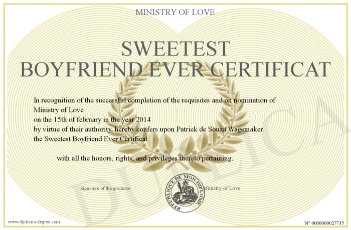 Certificate-degree can have your Sweetest Boyfriend Ever Certificat