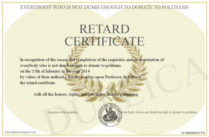 delivered to his owner by everybody who is not dumb enough to donate to politians !