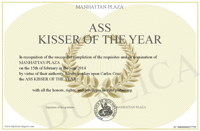 Certificate-degree can have your ASS KISSER OF THE YEAR