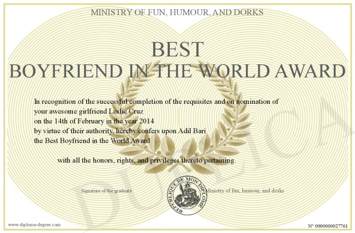 Certificate-degree can have your Best Boyfriend in the World Award