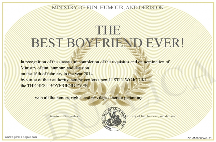 Certificate-degree can have your THE BEST BOYFRIEND EVER!