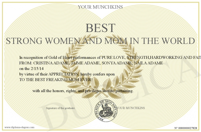 Certificate-degree can have your BEST STRONG WOMEN AND MOM IN THE WORLD