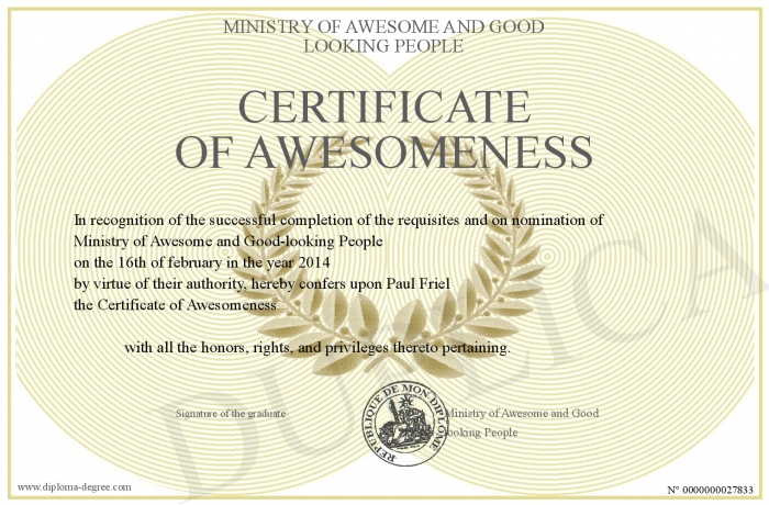 Certificate-degree can have your Certificate of Awesomeness