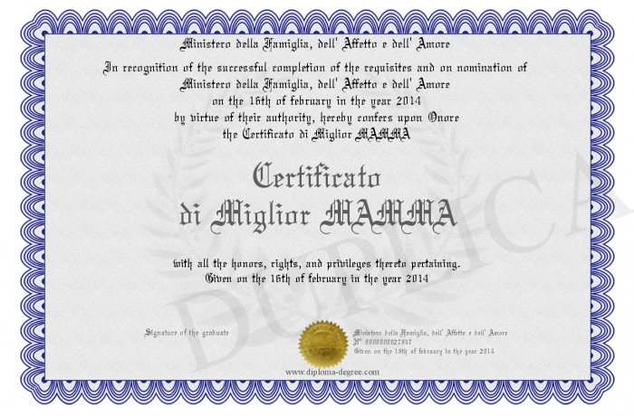 Certificate-degree can have your Certificato di Miglior MAMMA