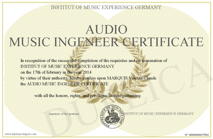 Certificate-degree can have your AUDIO MUSIC INGENEER CERTIFICATE