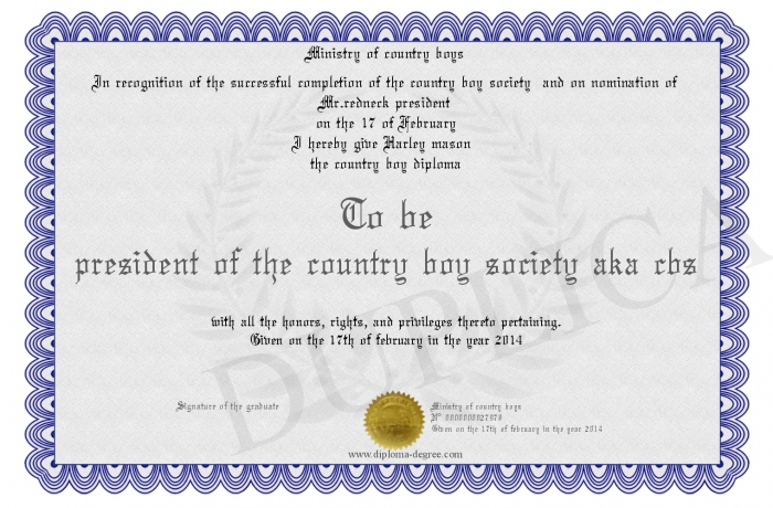 Certificate-degree can have your To be president of the country boy society aka cbs