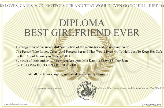 Certificate-degree can have your DIPLOMA BEST GIRLFRIEND EVER