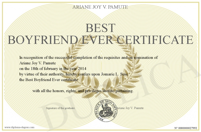 Certificate-degree can have your Best Boyfriend Ever certificate