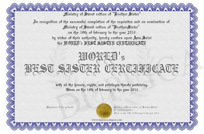 Certificate-degree can have your WORLD's BEST SISTER CERTIFICATE