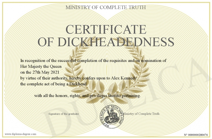 Certificate-degree can have your Certificate of Dickheadedness