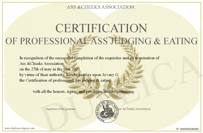 Certificate-degree can have your Certification of professional Ass judging & eating