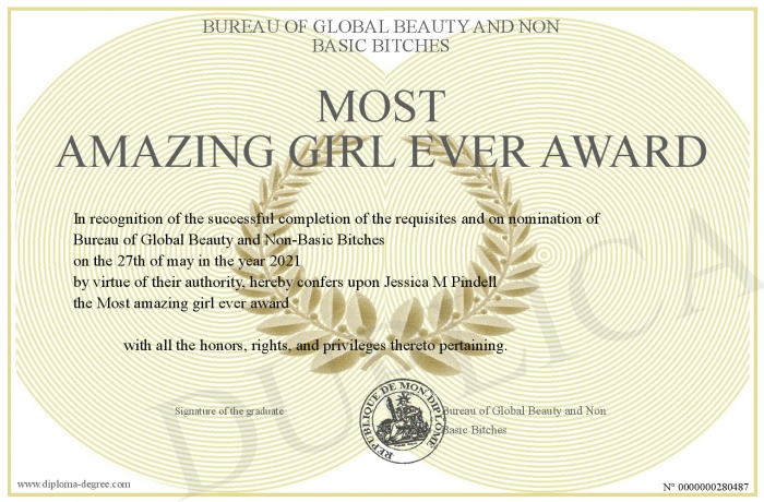 Certificate-degree can have your Most amazing girl ever award