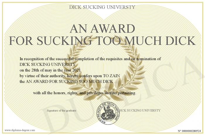 Certificate-degree can have your AN AWARD FOR SUCKING TOO MUCH DICK
