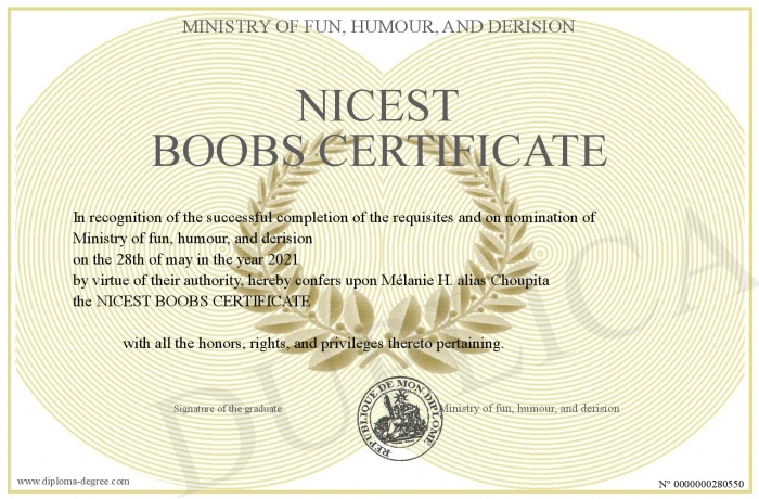 Certificate-degree can have your NICEST BOOBS CERTIFICATE