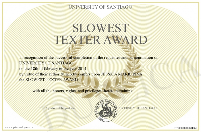 Certificate-degree can have your SLOWEST TEXTER AWARD