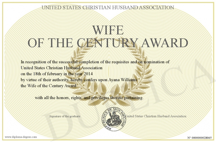 Certificate-degree can have your Wife of the Century Award
