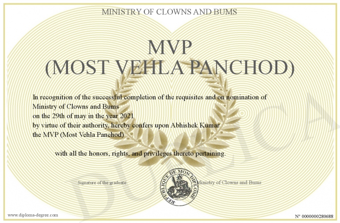 Certificate-degree can have your MVP (Most Vehla Panchod)