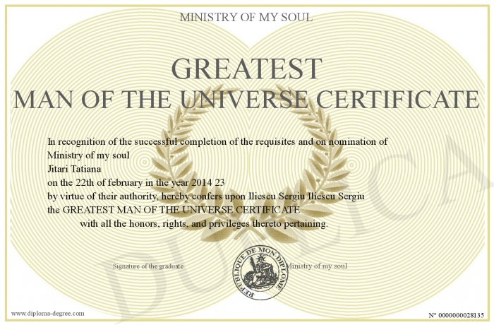 Certificate-degree can have your GREATEST MAN OF THE UNIVERSE CERTIFICATE