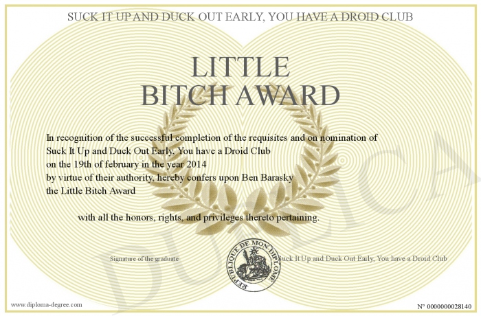 delivered to his owner by Suck It Up and Duck Out Early, You have a Droid Club !