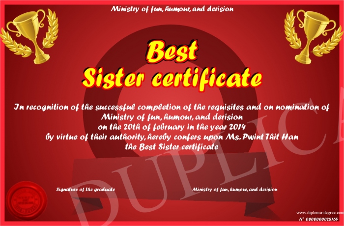 Certificate-degree can have your Best Sister certificate