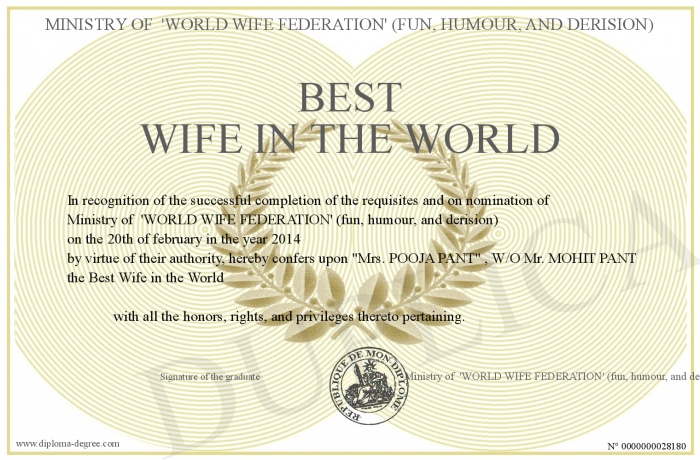 Certificate-degree can have your Best Wife in the World