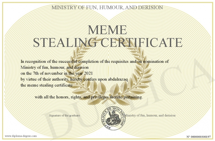 Certificate-degree can have your meme stealing certificate